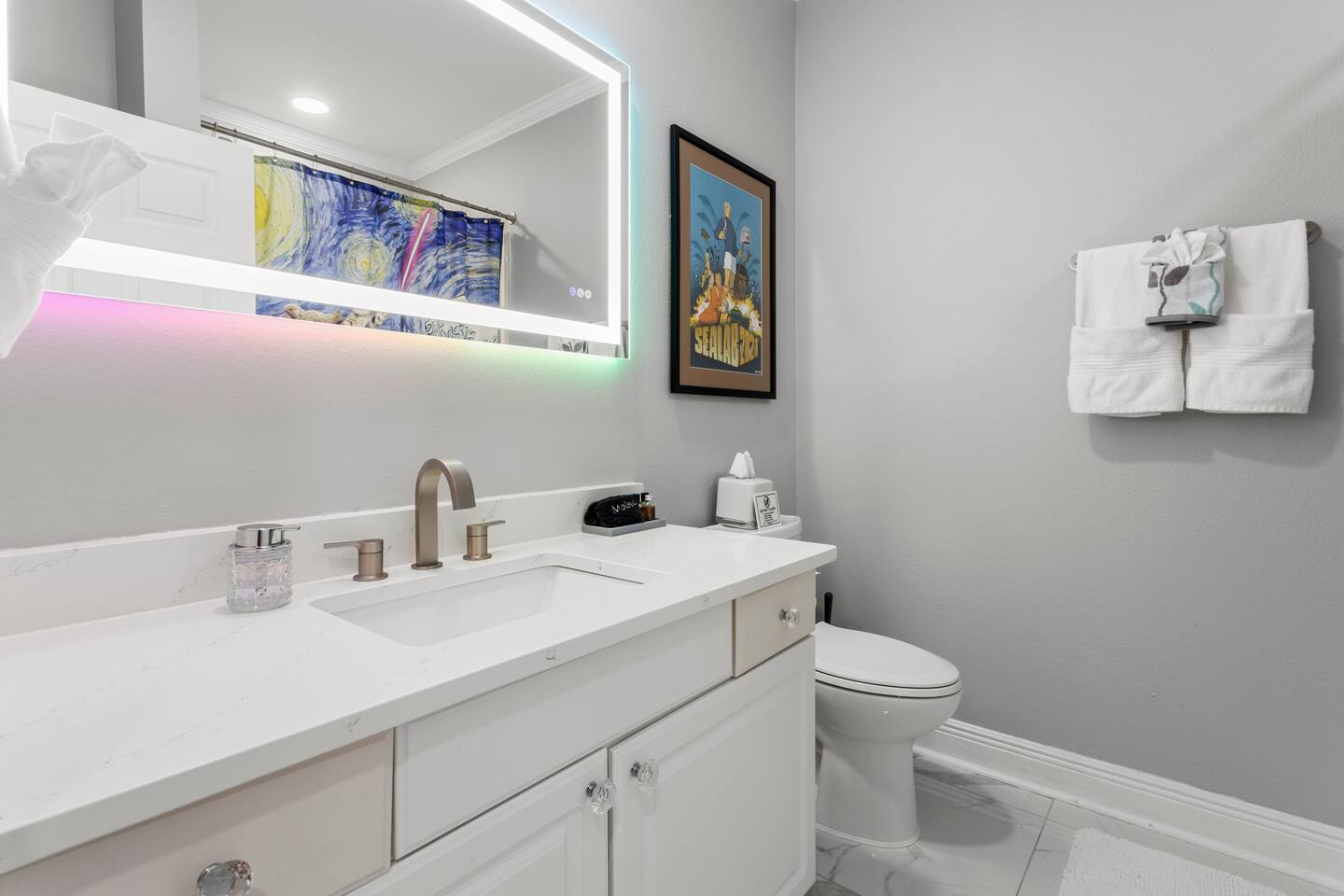 Welcome to our spacious 3BR/2BA condo on the Gulfport-Biloxi coast! Enjoy a full kitchen, large living area, garage, 2 pools, arcade, and smart TVs. The master suite features a king bed and private bath. Just minutes from beaches, dining, and entertainment. Perfect for families or business travel. Professionally cleaned and fully stocked—your ideal coastal getaway awaits!